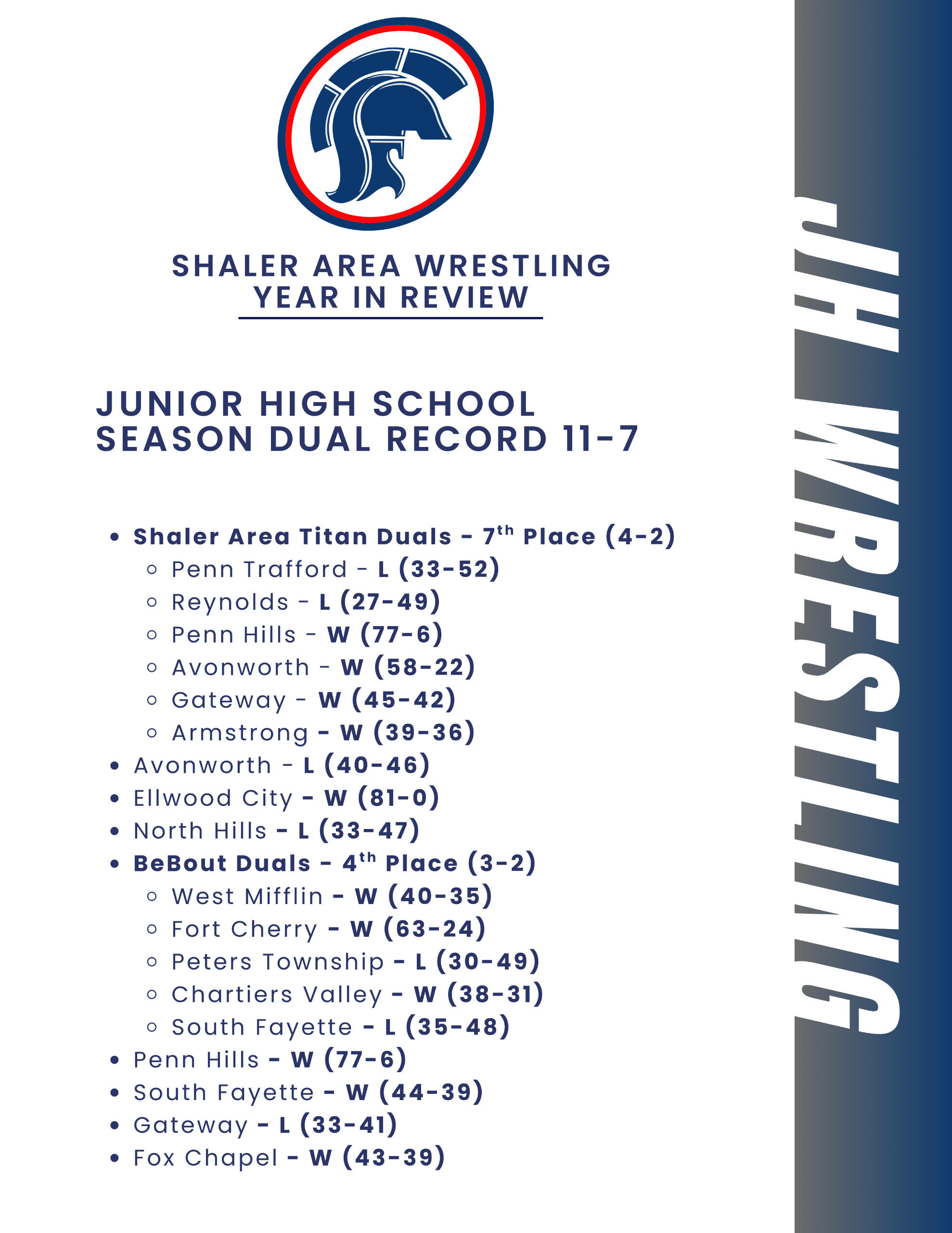 Welcome to the home of the Shaler Area Titan High School Boys Varsity, High School Girls Varsity & Junior High School Wrestling teams.