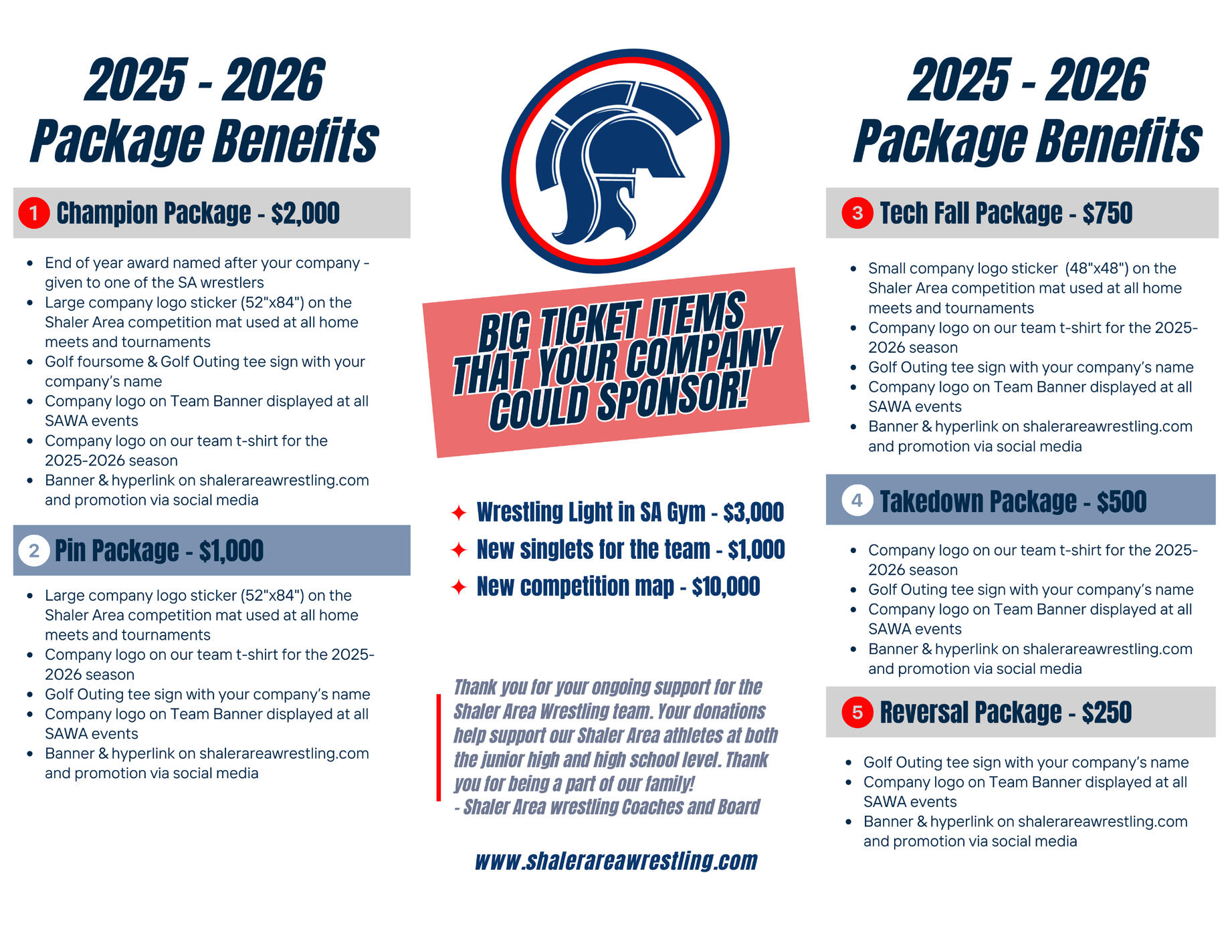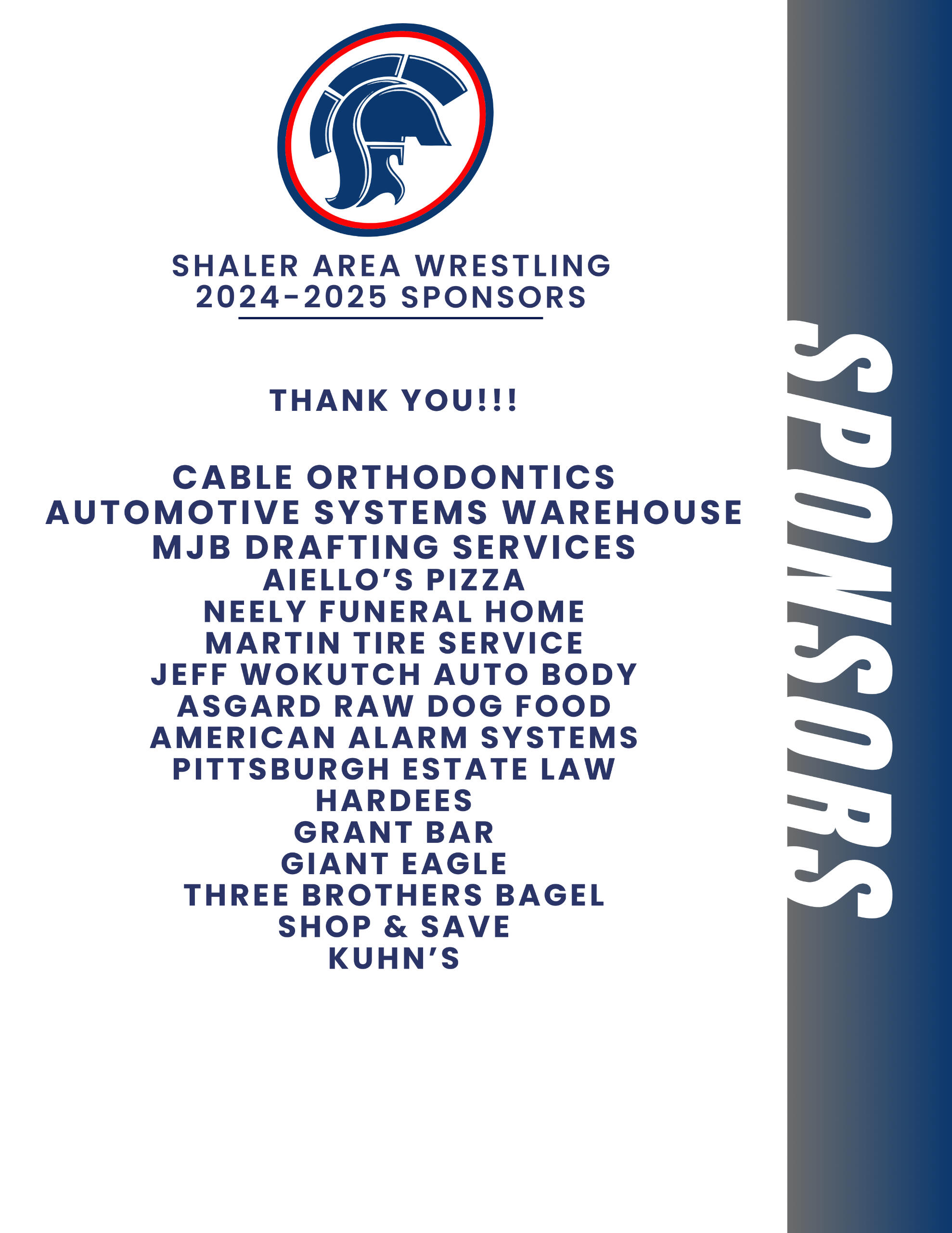 There are two easy ways to sponsor the Shaler Area Wrestling Association! Be sure to provide your company name and contact number with any method. We will reach out and confirm all details as soon as possible.1. Venmo: @SAWAtitans22. Send a check made out to Shaler Area Wrestling Association: